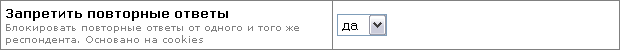 Пример: ![]() Выберите язык и кодировкуВыберите язык и соответственную ему кодировку. Кодировка - это набор символов, использующийся на страницах анкеты. Для английского языка и большинства европейских языков используются Western European, для русского - Cyrillic. Также доступны азиатские кодировки (Japanese, Chinese, Korean), Unicode, UTF-8 и многие другие. Выбранная кодировка будет использована в теге "Meta" на страницах анкеты, так чтобы браузер респондента смог отобразить страницу в правильном наборе символов. ![]() Запрет повторных ответовЭта функция использует файлы cookie для запрета повторных заполнений анкеты от одного и того же респондента. Значения функции: Внимание: Даже если вы поставили "Да", респондент сможет заполнить анкету несколько раз, если он: